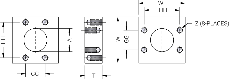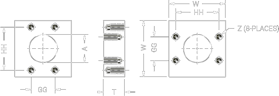 | Part Number | Flange Size | A | Z | GG | HH | T |